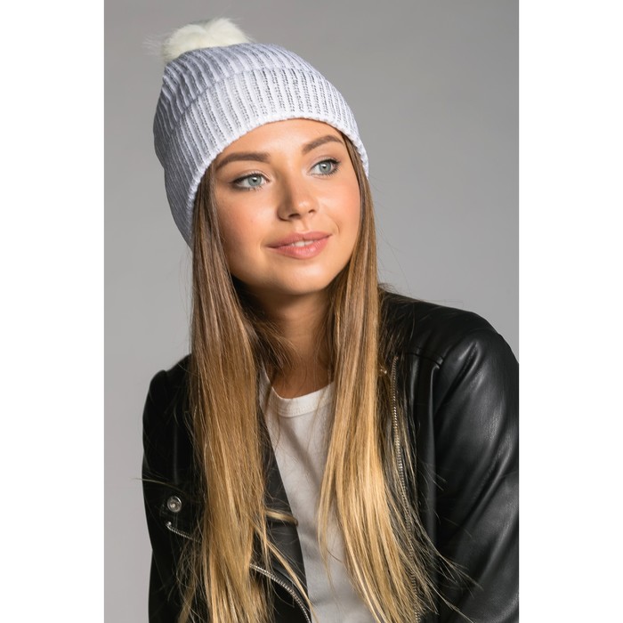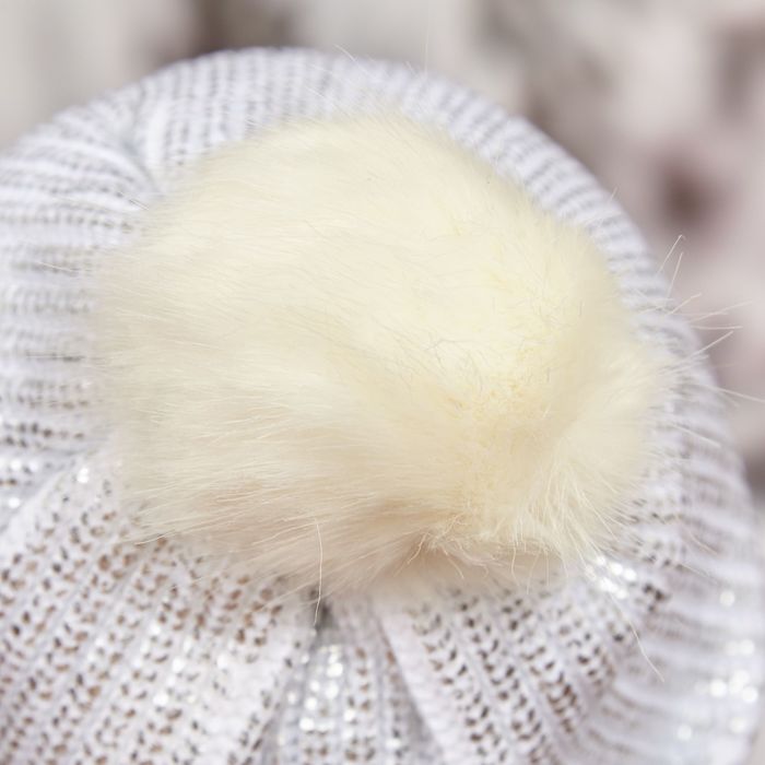 Шапка демисезонная с помпоном, размер 52-54, цвет белое золото