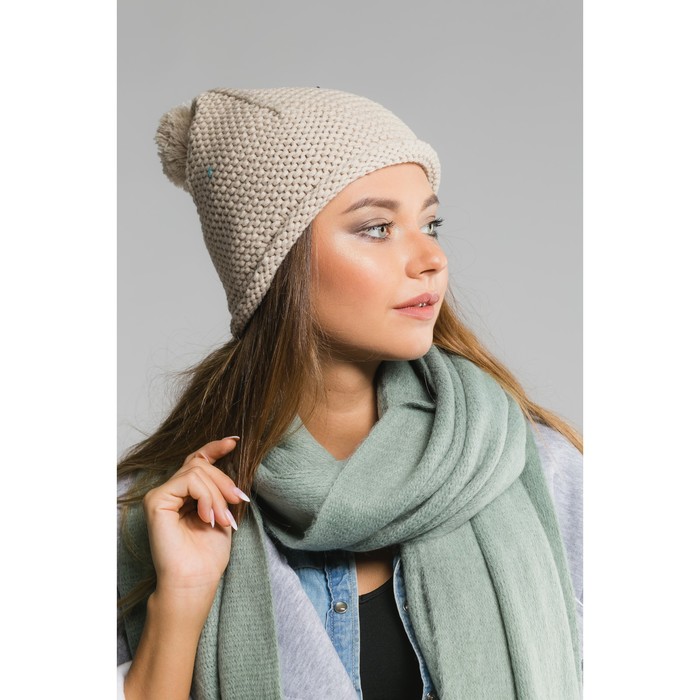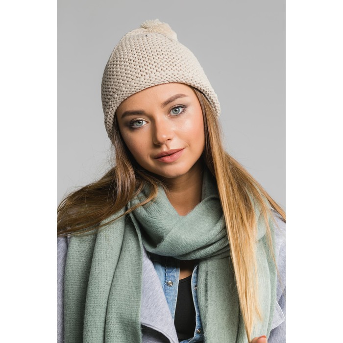 Шапка демисезонная с помпоном "Весёлый гном", размер 52-54, цвет бежевый