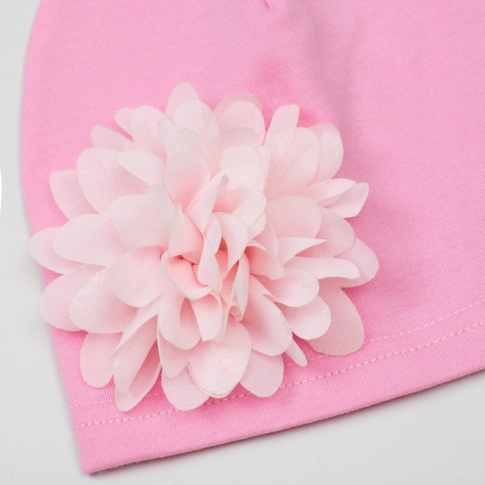 Шапка детская "Цветочек" розовая с пудровым цветком, р-р 52, 100% хл, интерлок