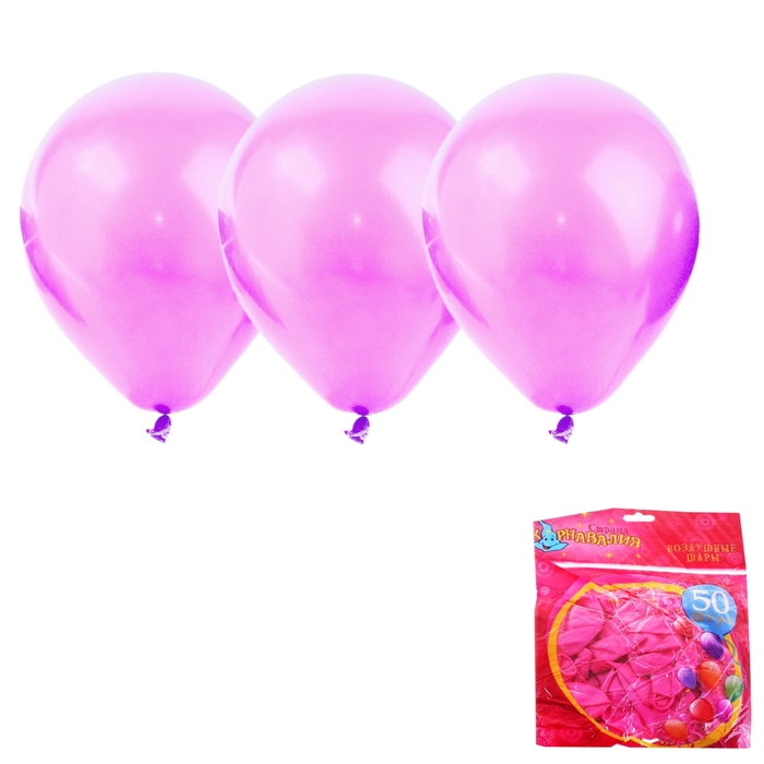 Шар латексный 10", металл, набор 50 шт., цвет розовый