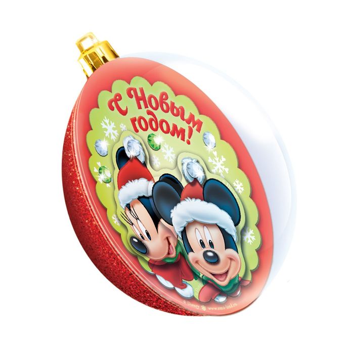 Шар новогодний "С Новым годом" Микки Маус и его друзья с 3D апплик + стразы, блест 2 гр
