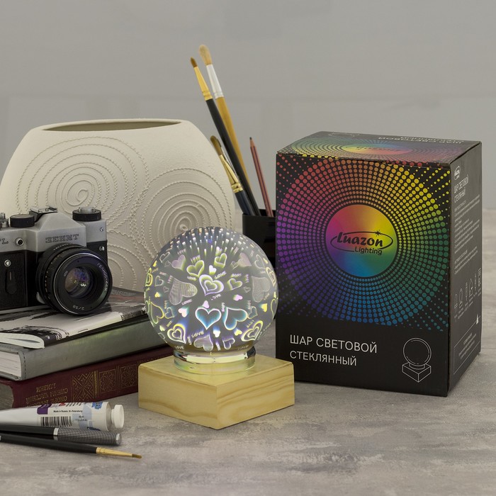 Шар световой стеклянный "Сердечки", USB, 5V, 6 LED