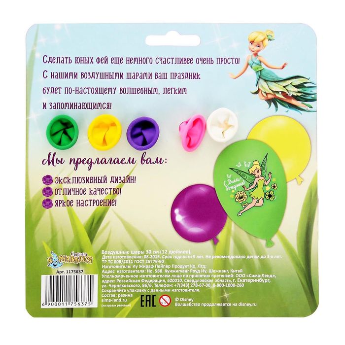 Шар воздушный "С днем рождения" Феи (набор 5 шт) 12 дюйм