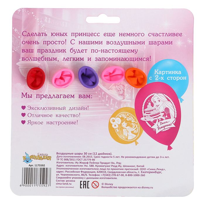 Шар воздушный "С днем рождения" Принцессы (набор 5 шт) 12 дюйм