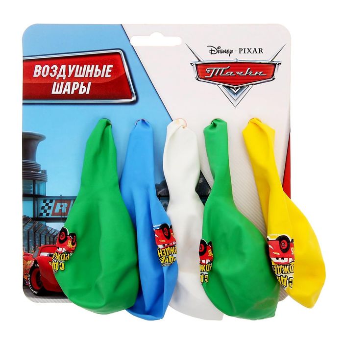 Шар воздушный "С днем рождения" Тачки (набор 5 шт) 12 дюйм