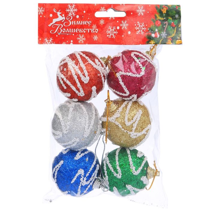 Шары новогодние "Блеск" с посыпкой (набор 6 шт) d-5 см