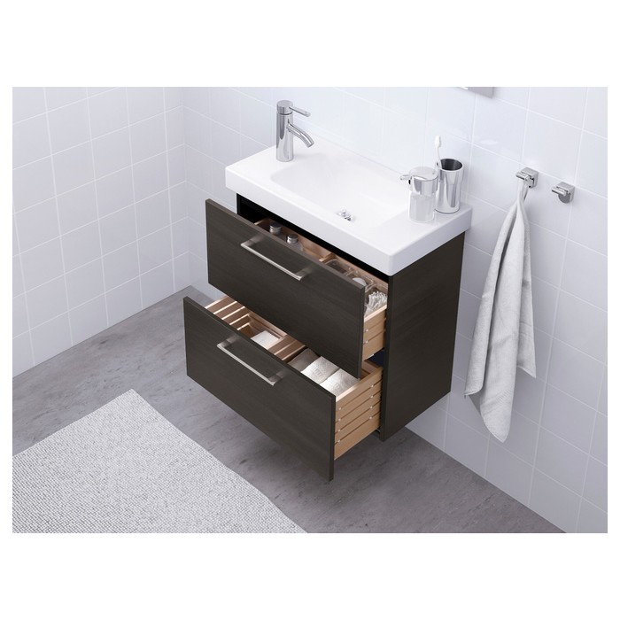 Шкаф для раковины ГОДМОРГОН с 2 ящика, черно-коричневый прекрасно впишется в интерьер ванной комнаты. Изделие выполнено из влагостойких материалов, которые надолго сохраняют первозданный внешний вид. Теперь хранить гигиенические принадлежности и поддерживать порядок будет легко и просто!