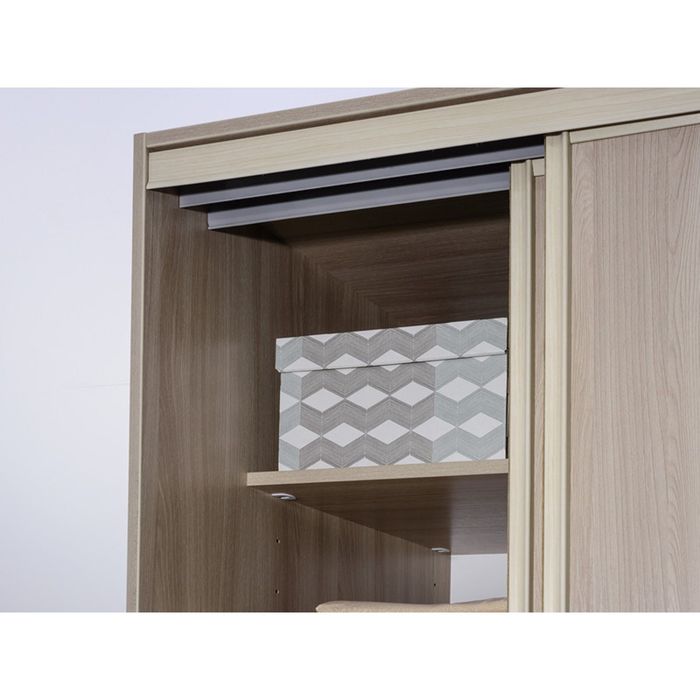 Классический шкаф-купе подходит для тех, кто предпочитает рационально использовать пространство. Он оснащён тремя антресольными полками, куда можно убрать предметы, которыми вы пользуетесь не каждый день. На трёх штангах-перекладинах поместится одежда любого размера и назначения. По центру расположены пять полочек. Складывайте на них постельное бельё, трикотажные вещи и прочие повседневные мелочи.