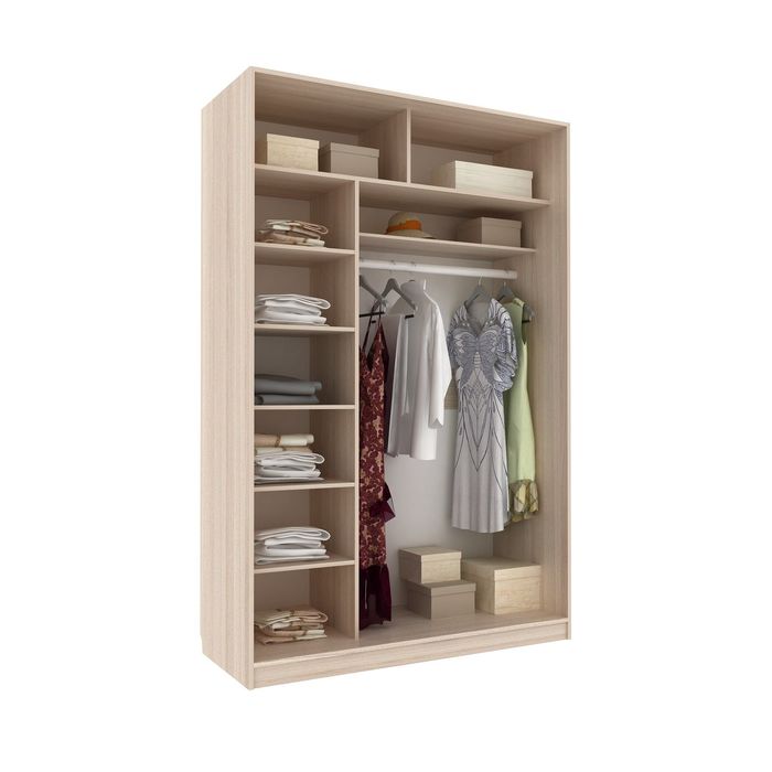 Перед вами система хранения, оснащённая всем необходимым. Здесь есть две антресольные полки, куда вы сможете убрать предметы, которыми пользуетесь не каждый день. На штанге-перекладине поместится одежда любого размера и назначения. Слева и над ней расположены шесть полочек, складывайте на них постельное бельё, трикотажные вещи и прочие повседневные мелочи.
