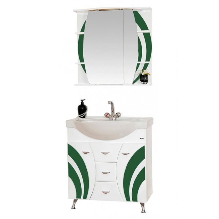 Шкаф-зеркало Misty "Каролина 70", правый, с подсветкой, зеленый