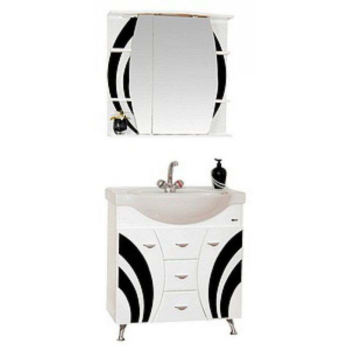 Шкаф-зеркало Misty "Каролина 80", левый, с подсветкой, черный