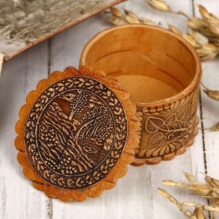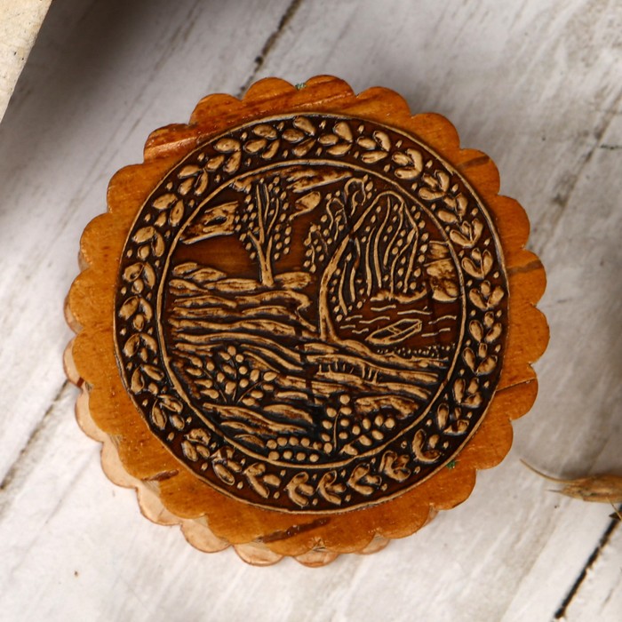 Шкатулка «Березки у реки», 4х2,5 см, береста
