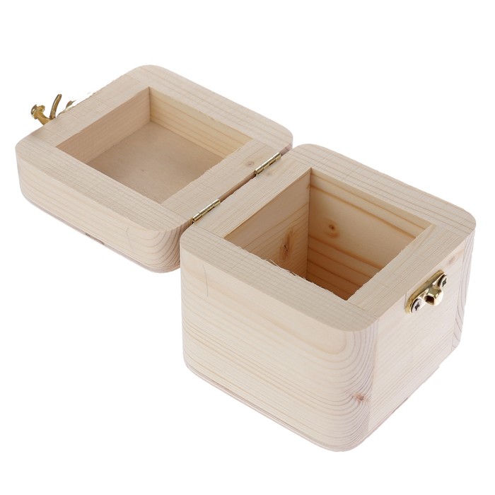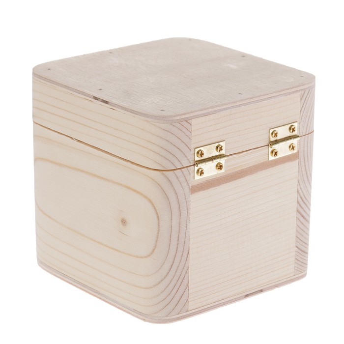 Шкатулка c закругленными углами из массива сосны для декора, с замком, 10х10х10см