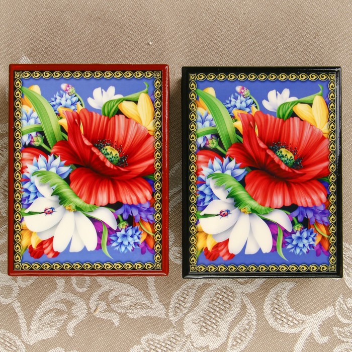 Шкатулка «Цветы 4», лаковая миниатюра, 8х10,5 см, микс