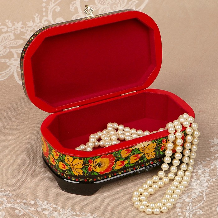 Шкатулка «Цветы», овальная, хохлома, ручная роспись, 17×10 см, чёрная
