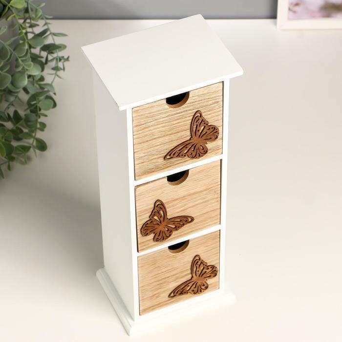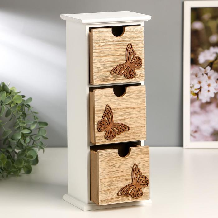 Шкатулка дерево комод 3 ящика "Ажурные бабочки" 33,8х13х10 см