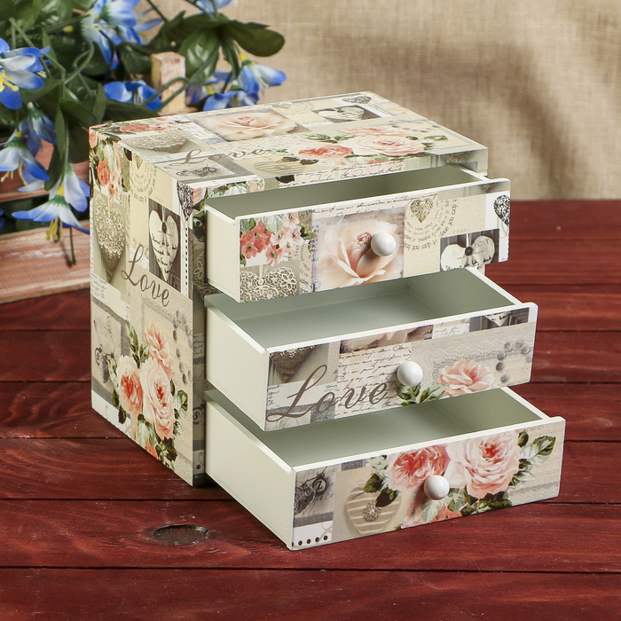 Шкатулка дерево комод 3 ящика "Винтаж. Цветы" 14,8х15,6х11,6 см