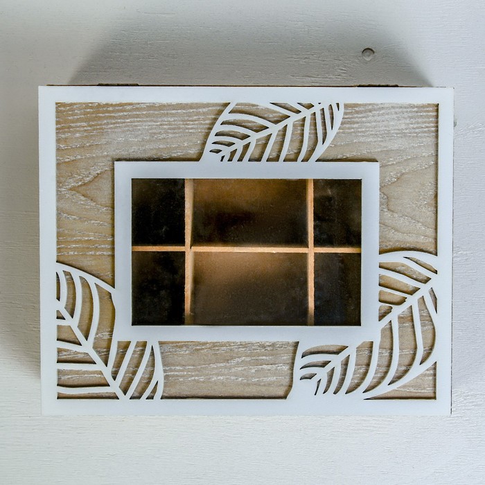 Шкатулка дерево с делениями "Пальмовые листья" 6,2х25х20 см