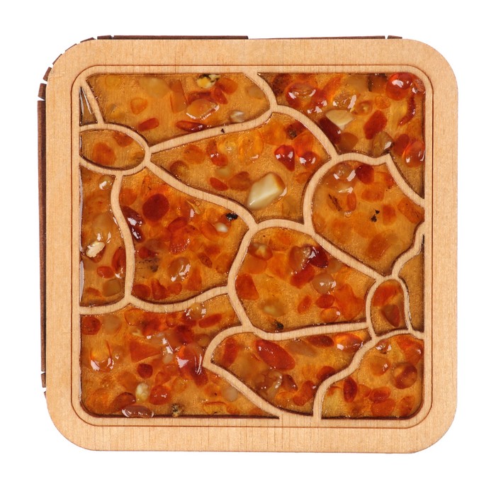 Шкатулка дерево с янтарем "Крупные цветы" 9,5х9,5х5,5 см