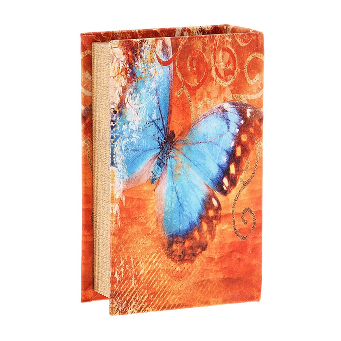 Шкатулка-книга "Голубая бабочка", обита шёлком