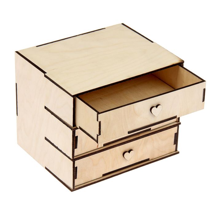 Сегодня особо ценится, когда в интерьере присутствуют hand-made изделия, ведь на дворе век массового производства, и все труднее становится найти вещь, которой бы не было ни у кого. В таком случае мы представляем вам небольшую заготовку — это шкатулка "Комод с тремя ящичками", набор 36 деталей. Её можно задекорировать разными способами: нанести рисунок, обрамить бисером или стразами, а, быть может, выжечь какую-нибудь надпись или портрет. Масса способов привнести нотки креативности в любой интерьер!