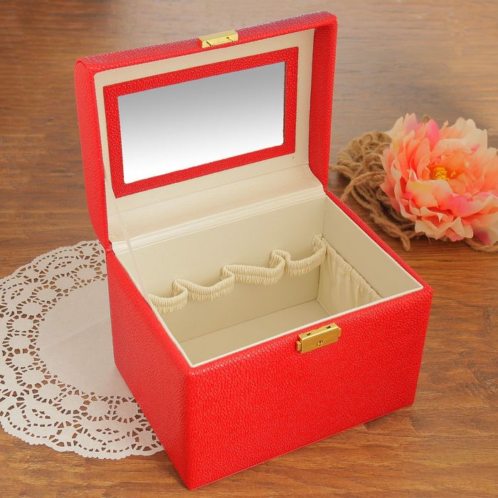 Если у вас есть ювелирные украшения и различная бижутерия, то обязательно должна быть и шкатулка. Тогда в нужный момент вы найдёте подходящий аксессуар или положите его на место, чтобы не потерять. Шкатулка кожзам для косметики "Красная" 16,5х22х16,5 см предназначена как раз для хранения украшений.