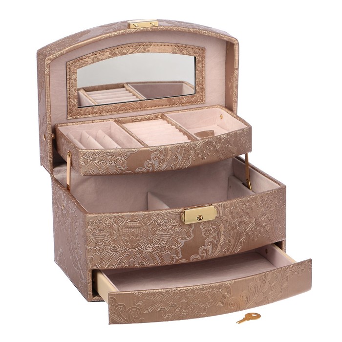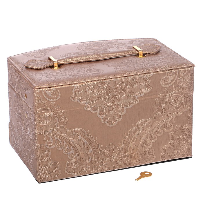Шкатулка кожзам для украшений "Растительный узор" бронза 13х21,5х15,5 см