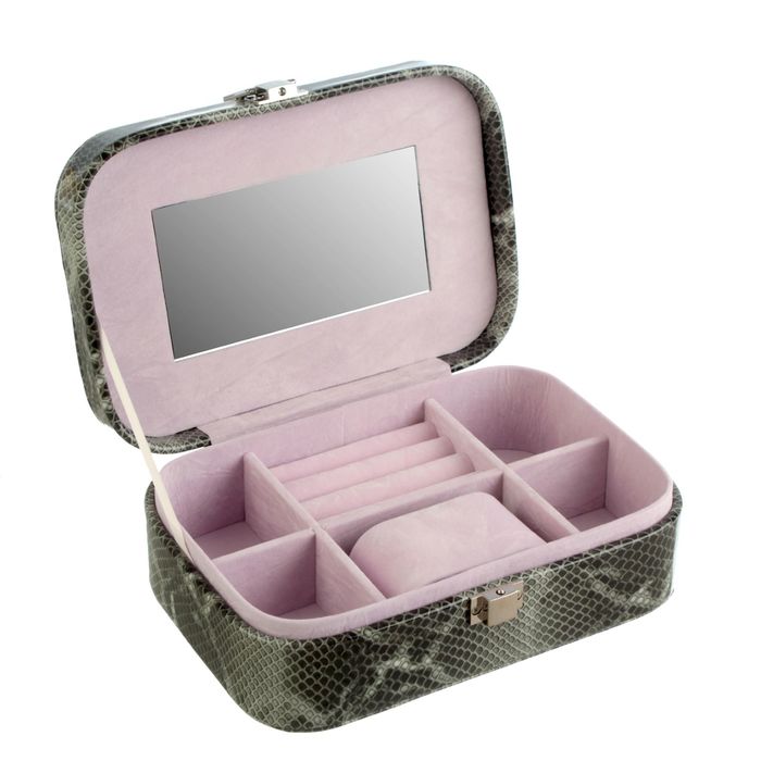Если у вас есть ювелирные украшения и различная бижутерия, то обязательно должна быть и шкатулка. Тогда в нужный момент вы найдёте подходящий аксессуар или положите его на место, чтобы не потерять. Шкатулка кожзам для украшений "Серый питон" 6,5х20х14 см предназначена как раз для хранения украшений.