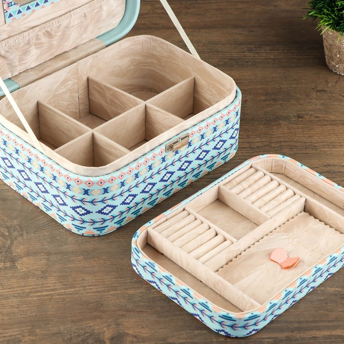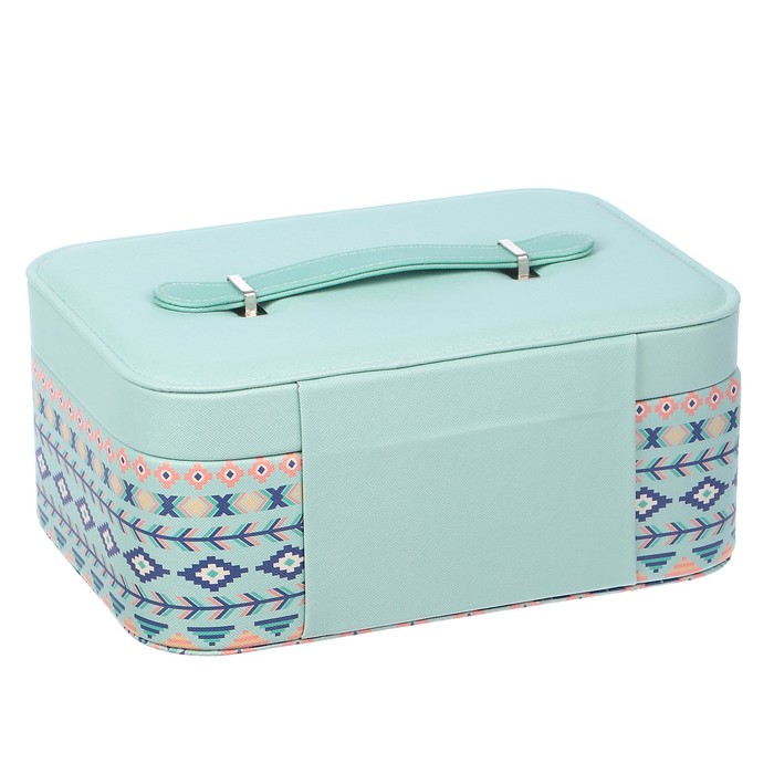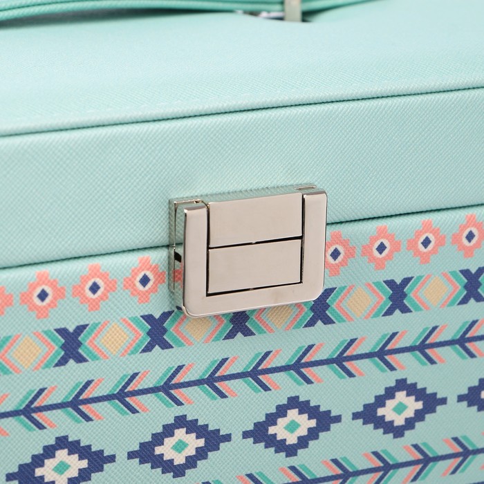 Шкатулка кожзам для украшений "Северные узоры" голубая 18х25,5х11 см