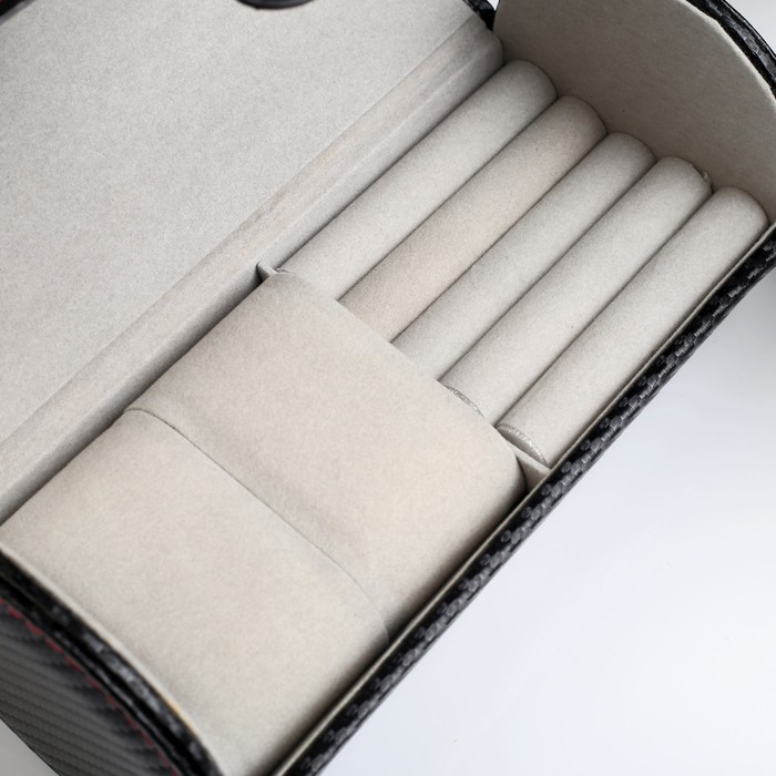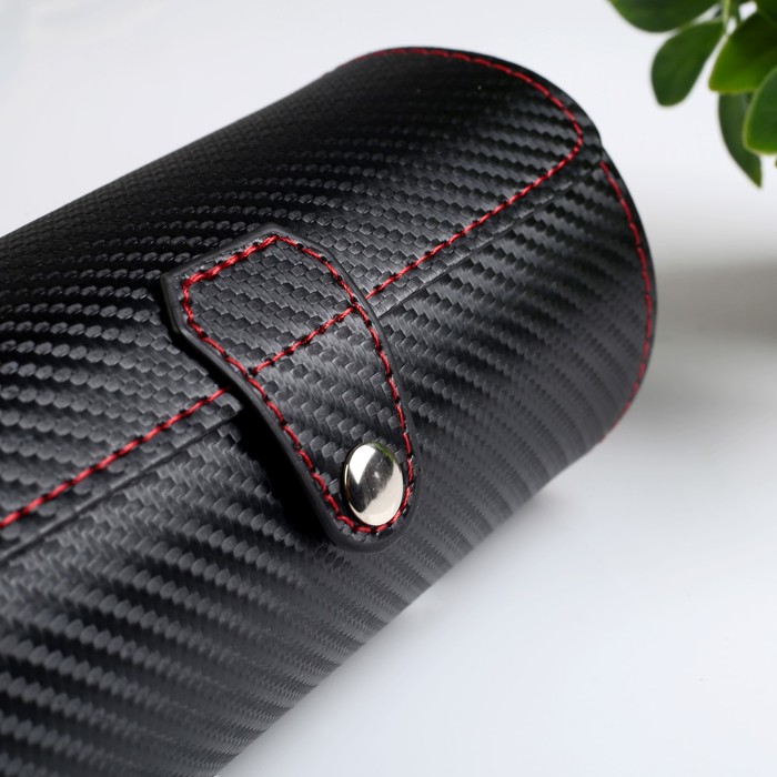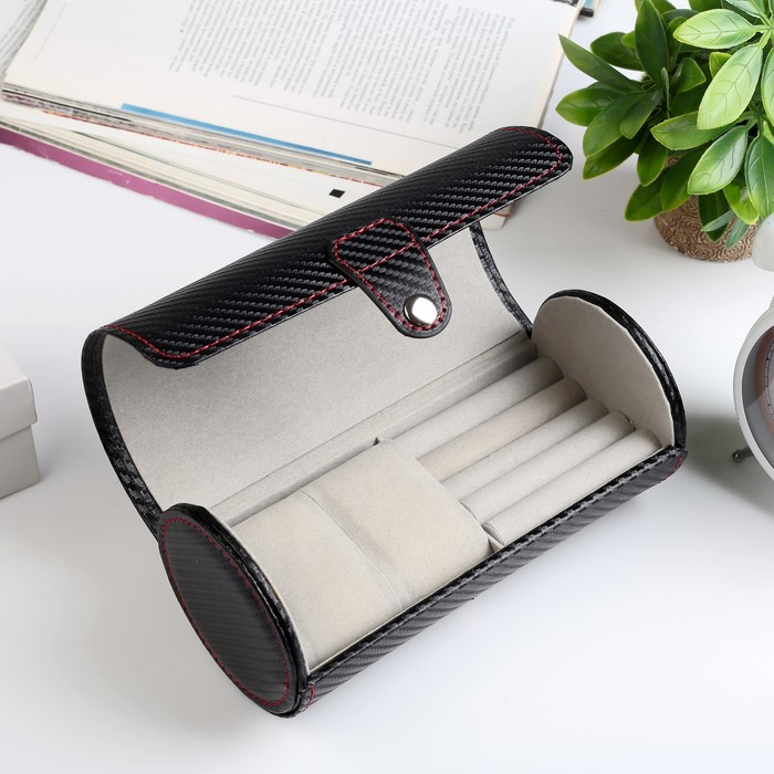 Шкатулка кожзам под часы 2 отделения и бижутерию "Красная строчка на чёрном" 8,5х19х8,5 см