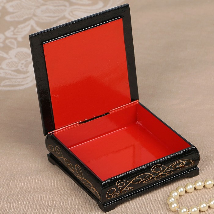 Шкатулка «Лесная река», с накладкой, лаковая миниатюра, 10х10 см