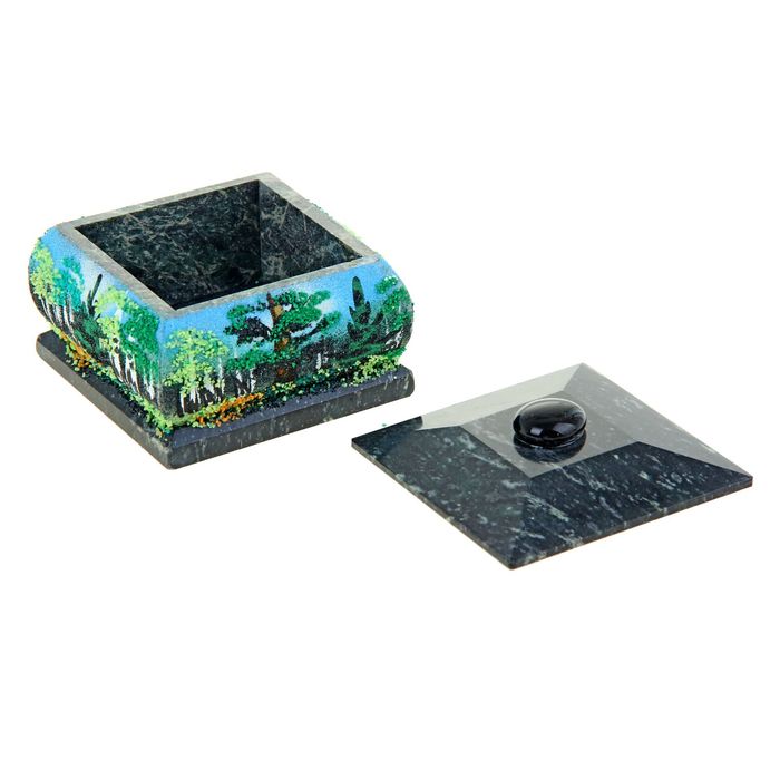 Шкатулка "Лето" 7х7 см 112240 змеевик станет замечательным подарком спортсменам, врачам и фармацевтам, юристам и бизнесменам, учащимся и обучающим. На лицевой поверхности изделия допускаются прожилки и полосы, не ухудшающие декоративные свойства. На обороте допускаются незначительная пористость, волнистость, следы инструмента.