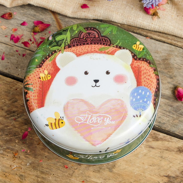 Шкатулка металл круглая "Мишка с сердечком" 6х14х14 см