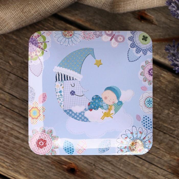 Шкатулка металл квадрат "Малыш на месяце" 8х9х9 см