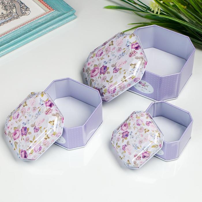 Шкатулка металл набор 3 шт "Пионы" 5,5х9,5х9,5, 5х8х8, 4,5х6,3х6,3 см
