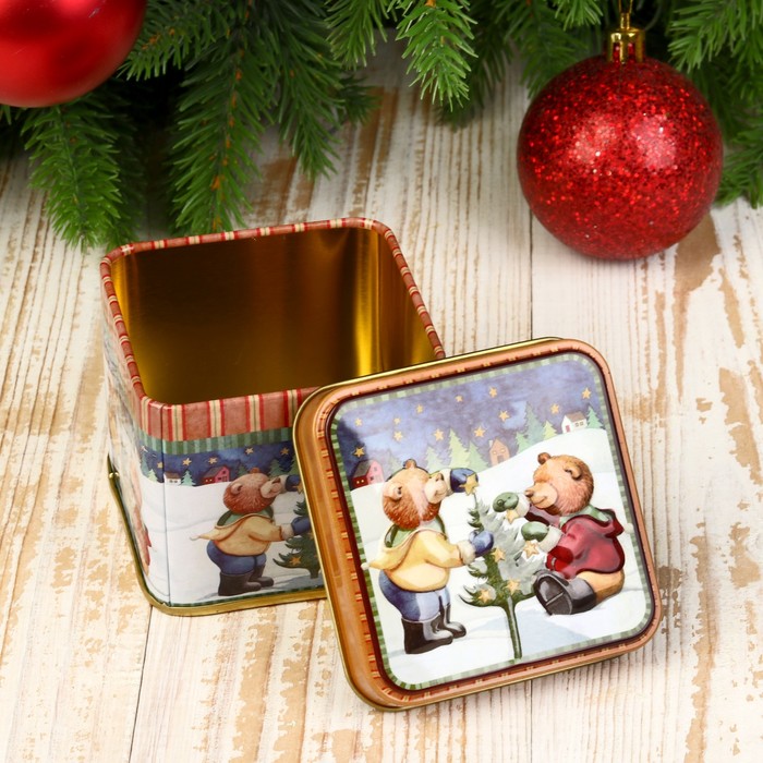 Шкатулка новогодняя "Медвежата наряжают ёлку"