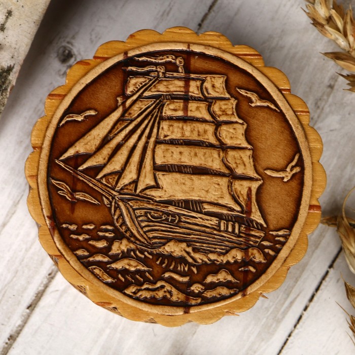 Шкатулка «Парусник», 6х3,5 см, береста