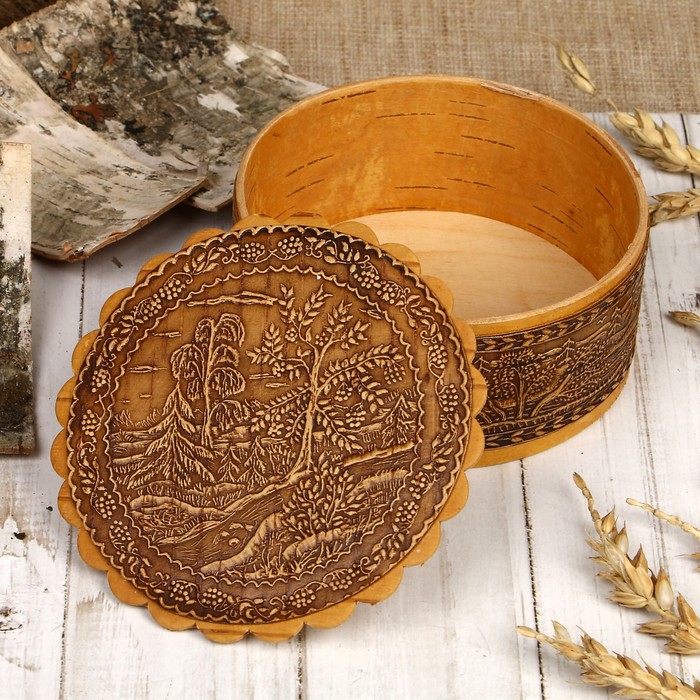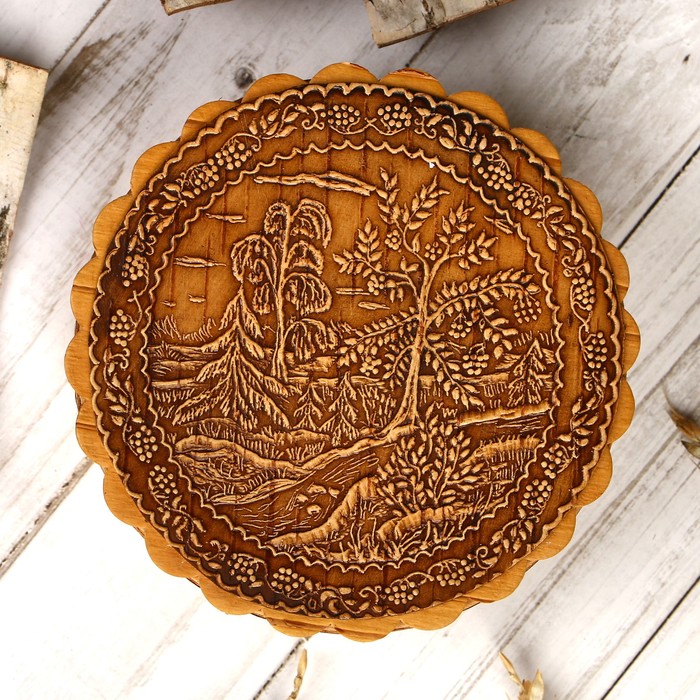 Шкатулка «Пейзаж с деревом», 10х4 см, береста