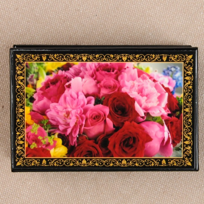Шкатулка «Пионы с розами», 6×9 см, лаковая миниатюра