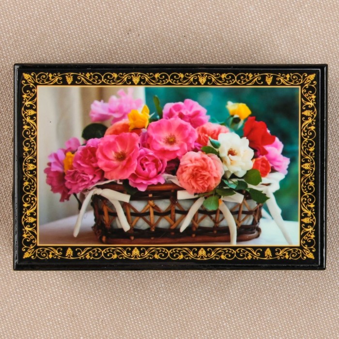 Шкатулка «Пионы в плетёной корзинке», 6×9 см, лаковая миниатюра