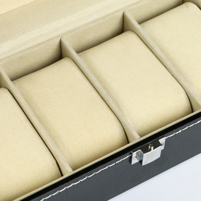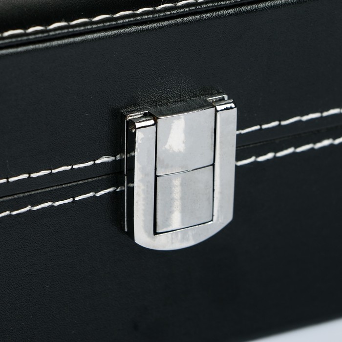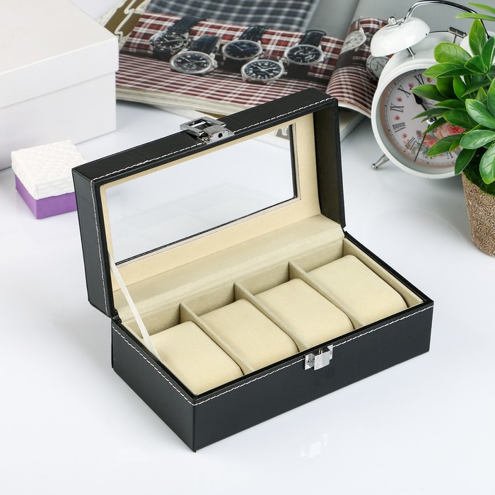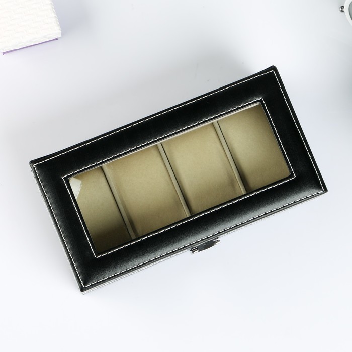 Шкатулка под часы кожзам 4 отделения "Чёрная ночь" матовая 7,5х20,5х10,5 см
