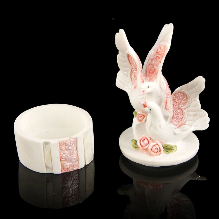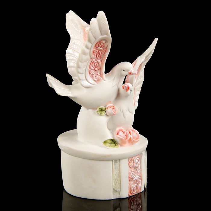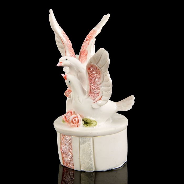 Шкатулка полистоун "Голубки в розах на подставке" 11х7,5х6 см