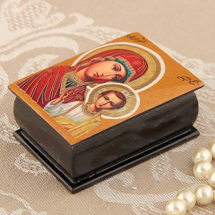 Шкатулка с иконой «Казанской Божией Матери», лаковая миниатюра, 6х4х3 см