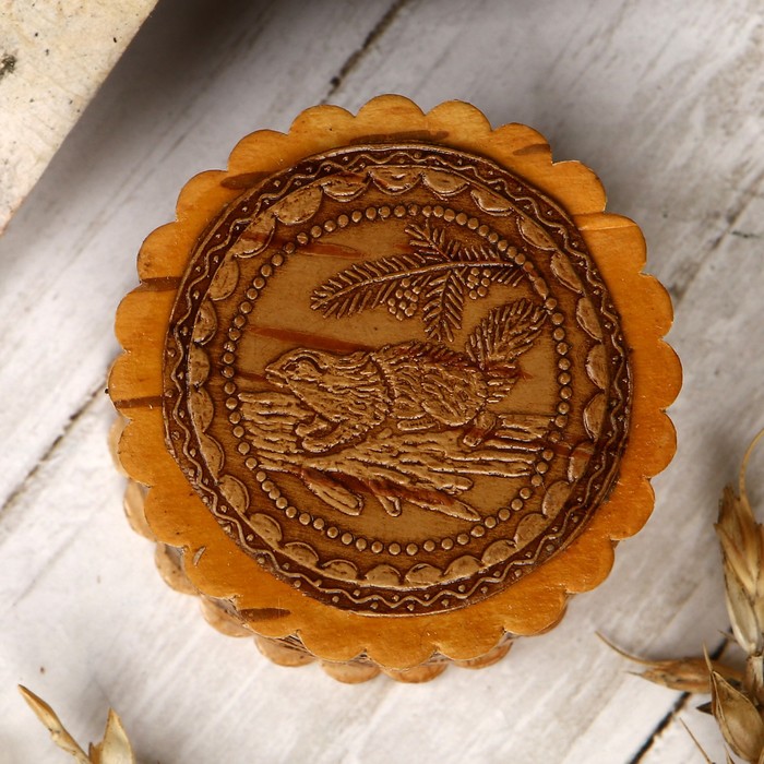 Шкатулка «Соболёк», 4×2,5 см, береста