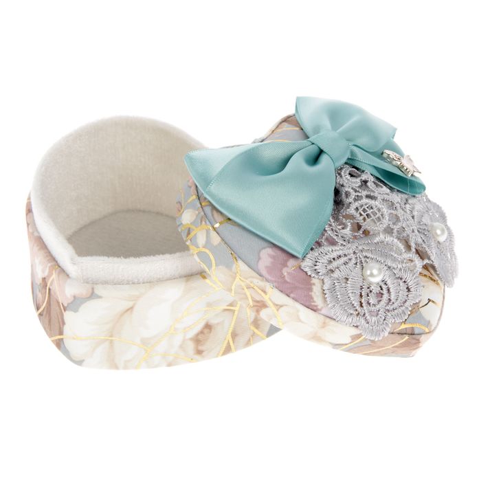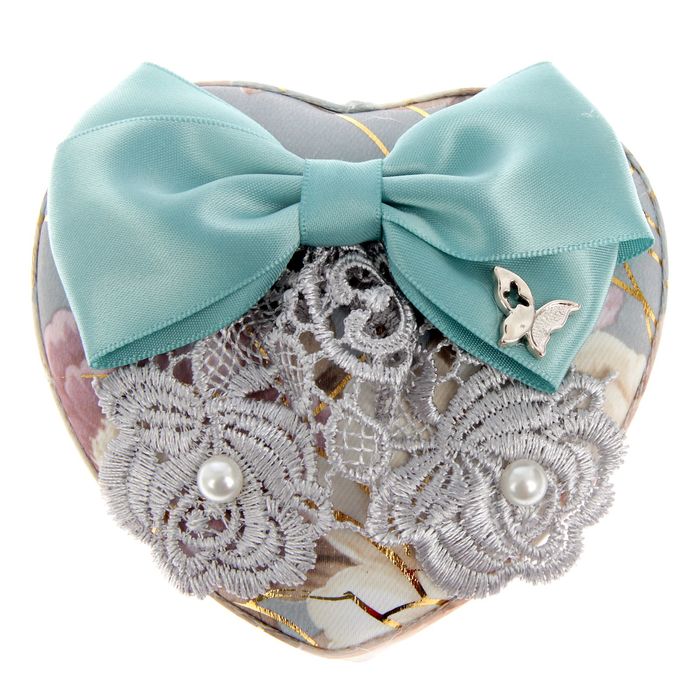Шкатулка текстиль для украшений сердце "Бант лазурный" 7х11х10,5 см