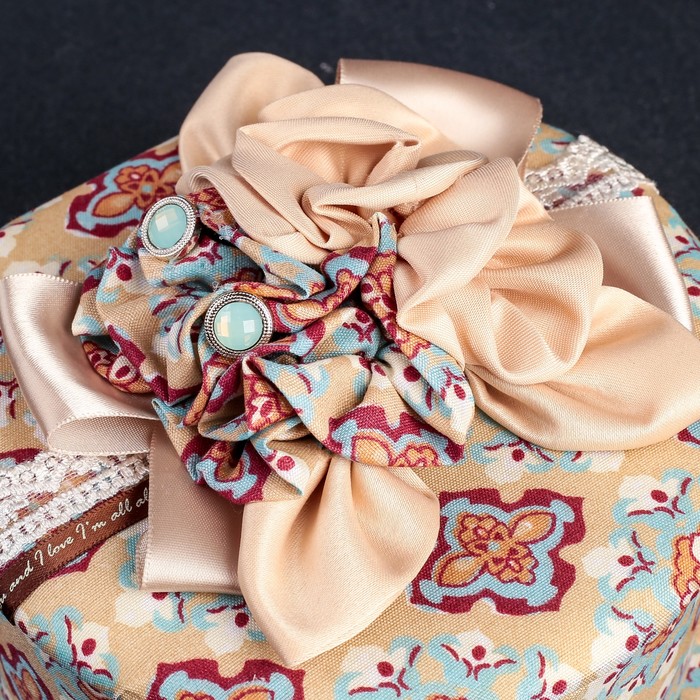 Шкатулка ткань для украшений "Круглая с пышным бантом" 6х15х14,5 см