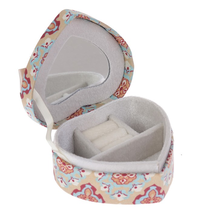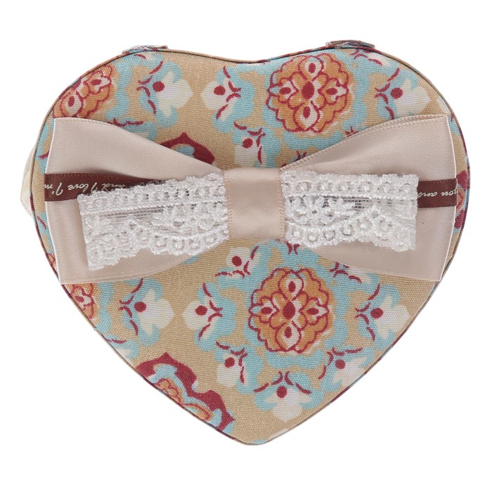 Шкатулка ткань для украшений "Сердце с бантом" 5х10,5х9,7 см