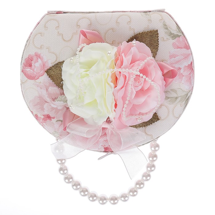 Шкатулка ткань для украшений "Сумочка с розами" 6,5х19х15 см