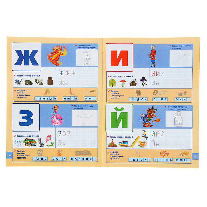 Школа Жуковой "Первая Азбука", обучающая активити + 50 многоразовых наклеек