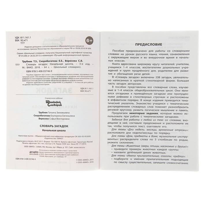 Школьный словарик. Словарь загадок. Автор: Скоробогатова Е.Е., Трубник Т.З., Вересова С.В.